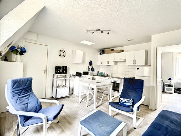 Trés joli appartement à double exposition Est/Ouest, avec séjour avec cuisine, grande chambre (15 m2), bureau (6 m2), salle d'eau avec wc. Au calme au dernier étage d'une petite copropriété, avec une trés agréable vue au-dessus des toits du centre-ville et vue sur l'église, il est idéalement situé pour un pied à terre ou pour un investissement locatif. Vendu avec l'électroménager de la cuisine : lave vaisselle, cuisinière avec plaque et four, machine-à-laver, réfrigérateur. Honoraires : 4,5 % TTC de 140 000EUR (prix de vente hors honoraires), soit 146 300 EUR honoraires inclus. Honoraires à la charge de l'acquéreur. Nos honoraires sont consultables consultables sur noovimo.fr Présenté par Valérie MATHIEU, votre agent commercial Noovimo inscrite au RSAC de Saint-Malo sous le No 850 783 796. 1 - Annonce rédigée et publiée par un Agent Mandataire -