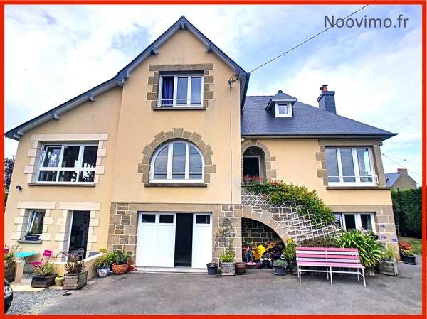 BAISSE DE PRIX Votre conseillère Noovimo Valérie MATHIEU ( 07 63 42 89 99 - vmathieu@noovimo.fr) vous propose cette grande maison de famille. Avec son parquet ancien plein de charme, elle a été rénovée par des matériaux de belle qualité et des couleurs douces qui vous séduiront. Elevée sur sous-sol, elle offre à son 1er niveau un salon de 34 m2, et une extension de 31 m2 offrant un très beau volume sous charpente et d'immenses fenêtres. Au même étage, le séjour s'ouvre sur une jolie cuisine pour un total de plus de 30 m2. La salle de bain avec baignoire, douche et double vasque, ainsi que des wc indépendants complètent ce niveau. Le 2ème niveau compte 2 très grandes chambres de 16 et 17 m2 et une chambrette avec rangements en sous-pente. Au rez-de-chaussée de la maison se trouve un appartement de 30 m2 indépendant avec séjour, salle d'eau avec WC et 1 chambre. Le reste du sous-sol abrite le garage de 30 m2, la buanderie, chaufferie et espace de rangement. Le jardin est arboré sur 700 m2, et la parcelle attenante de 150 m2 permet de stocker du matériel. Toiture entièrement rénovée et isolée il y a 10 ans. Ref : VMU-0008764. Honoraires : 3,5 % TTC de 455000 EUR ( prix de vente honoraires exclus), soit 470925 EUR honoraires inclus, à la charge de l'acquéreur. Nos honoraires sont consultables sur : noovimo.fr. Valérie MATHIEU, votre conseillère indépendante Noovimo inscrite au RSAC de Saint-Malo sous le No 850 783 796. 1 - Annonce rédigée et publiée par un Agent Mandataire -