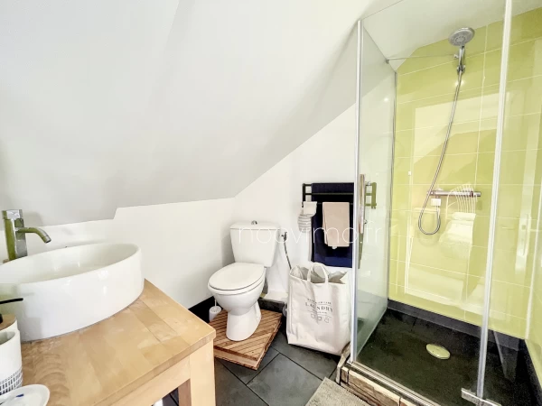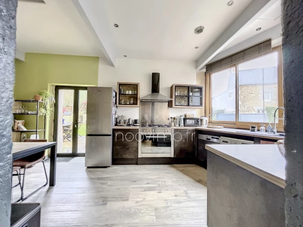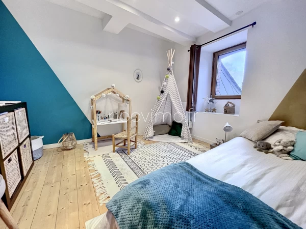 - EXCLUSIVITE NOOVIMO Valérie MATHIEU - A 30 minutes de Rennes et St-Malo, belle maison de pierres du XIX, rénovée avec soin et élégance. Elle allie le charme des murs de pierres intérieurs et des poutres, à la modernité de la cuisine majestueuse et de la décoration soignée. Au rez-de-chaussée, le salon de 30 m2 offre une ambiance accueillante et chaleureuse avec son poêle, ses poutres, ses pierres apparentes et son élégant carrelage façon parquet de chêne. La cuisine de 24 m2 est baignée de lumière. Aménagée et tout équipée, son style se marie parfaitement aux murs de pierre de la pièce. La porte fenêtre donne accès à la terrasse et au petit jardin arboré comprenantun abri/chalet. A l'étage, 2 chambres, dont une actuellement à usage de vaste bureau avec très grand placard sur mesure, et 1 salle d'eau avec wc. Au 2nd étage, une très belle chambre parentale de plus de 28 m2 au sol, avec sa salle d'eau privative avec wc. Chauffage poele à bois et rayonnants électriques, ballon d'eau chaude changé cette année, volets motorisés solaires, tout à l'égout. Dans le bourg calme de St-Solen, à moins de 5 minutes des commerces et commodités de Lanvallay, la maison se situe à mi-chemin entre Saint-Malo et Rennes, tous deux accessibles en 30 minutes. rix : 270 231 EUR net vendeur + 3,8 % d'honoraires agence à la charge de l'acquéreur, soit 280 500 EUR honoraires agence compris. Les informations sur les risques auxquels ce bien est exposé sont disponibles sur le site Géorisques : http://www.georisques.gouv.fr. Nos honoraires sont consultables sur www.noovimo.fr Valérie MATHIEU, votre agent commercial Noovimo inscrite au RSAC de Saint-Malo sous le No 850 783 796. - Annonce rédigée et publiée par un Agent Mandataire -