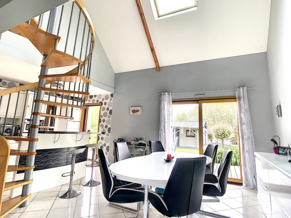 Belle nouveauté : Accolé à St-Benoit-des-Ondes, à Vildé-la-Marine, cette maison lumineuse est située au calme derrière le charmant quartier de l'église, et à 300 m du bord de mer. De très beaux volumes, un séjour à plafond 'cathédrale', une suite parentale au rdc avec dressing aménagé et salle d'eau privative, un salon très lumineux, 4 chambres à l'étage avec leur salle de bain balnéo, garage... le tout sur un charmant jardin paysager avec belle terrasse sud-ouest. 160 m2 habitables : Construction principale de 2007 en parpaings avec couverture ardoises naturelles, extension de 2014 ossature bois couverture bac acier. Bien proposé par votre conseillère NOOVIMO Valérie MATHIEU ( 07 63 42 89 99 - vmathieu@noovimo.fr) Honoraires : 3,8 % TTC de 300 000 EUR (prix de vente honoraires exclus). Soit 311 400 EUR honoraires inclus. Honoraires à la charge de l'acquéreur. Nos honoraires sont consultables sur noovimo.fr Valérie MATHIEU, votre conseillère indépendante Noovimo inscrite au RSAC de Saint-Malo sous le No 850 783 796. - Annonce rédigée et publiée par un Agent Mandataire -