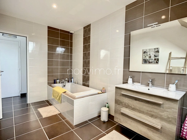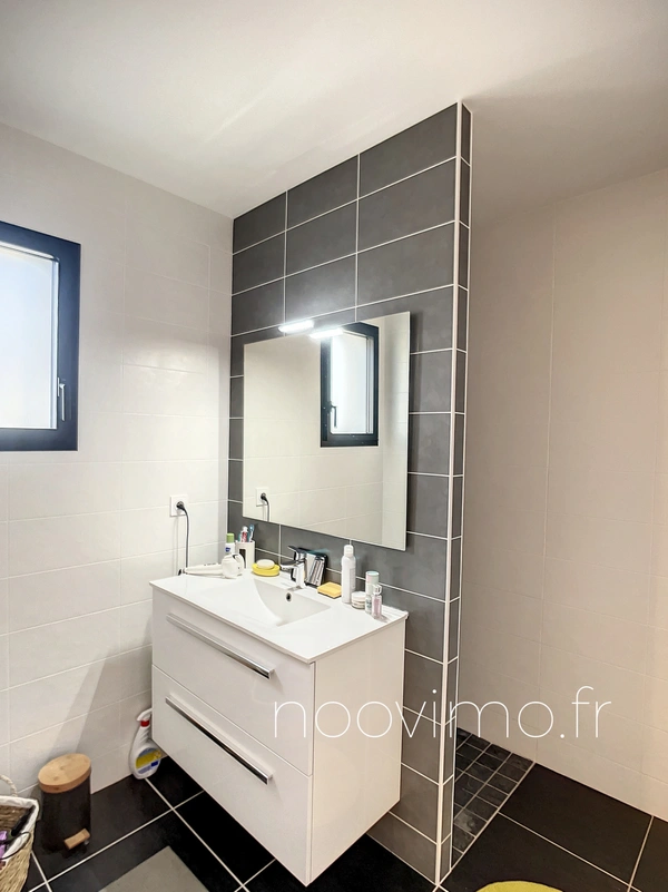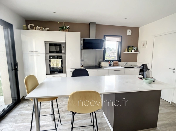 Valérie MATHIEU, 07 63 42 89 99, votre conseillère NOOVIMO vous propose : Très belle maison construite en 2017 (sous garantie décennale) avec une agréable vie de plain-pied, de beaux espaces et des prestations de qualité : Entrée avec placard toute hauteur, séjour lumineux avec larges baies sud et ouest ouvrant sur la terrasse et le jardin, belle cuisine toute équipée, suite en rez-de-chaussée avec chambre, dressing et salle d'eau (douche italienne), wc suspendus séparés. A l'étage 2 chambres de 17 m2 environ, une belle salle de bain, des wc séparés. Arrière cuisine/buanderie/chaufferie, vaste garage avec porte motorisée et double porte de service ouvrant sur le jardin. Chauffage par pompe à chaleur hybride gaz de ville, chauffage par le sol en rdc et par radiateurs à l'étage. Honoraires : 3,5 % TTC de 495 000EUR (prix de vente hors honoraires), soit 512 325 EUR honoraires inclus. Honoraires à la charge de l'acquéreur, consultables sur www.noovimo.fr. Valérie MATHIEU, votre agent commercial Noovimo inscrite au RSAC de Saint-Malo sous le No 850 783 796. 1 - Annonce rédigée et publiée par un Agent Mandataire -